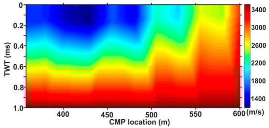 Real data. Root mean square (RMS) velocity model deduced from the velocity analysis of CMP gathers.