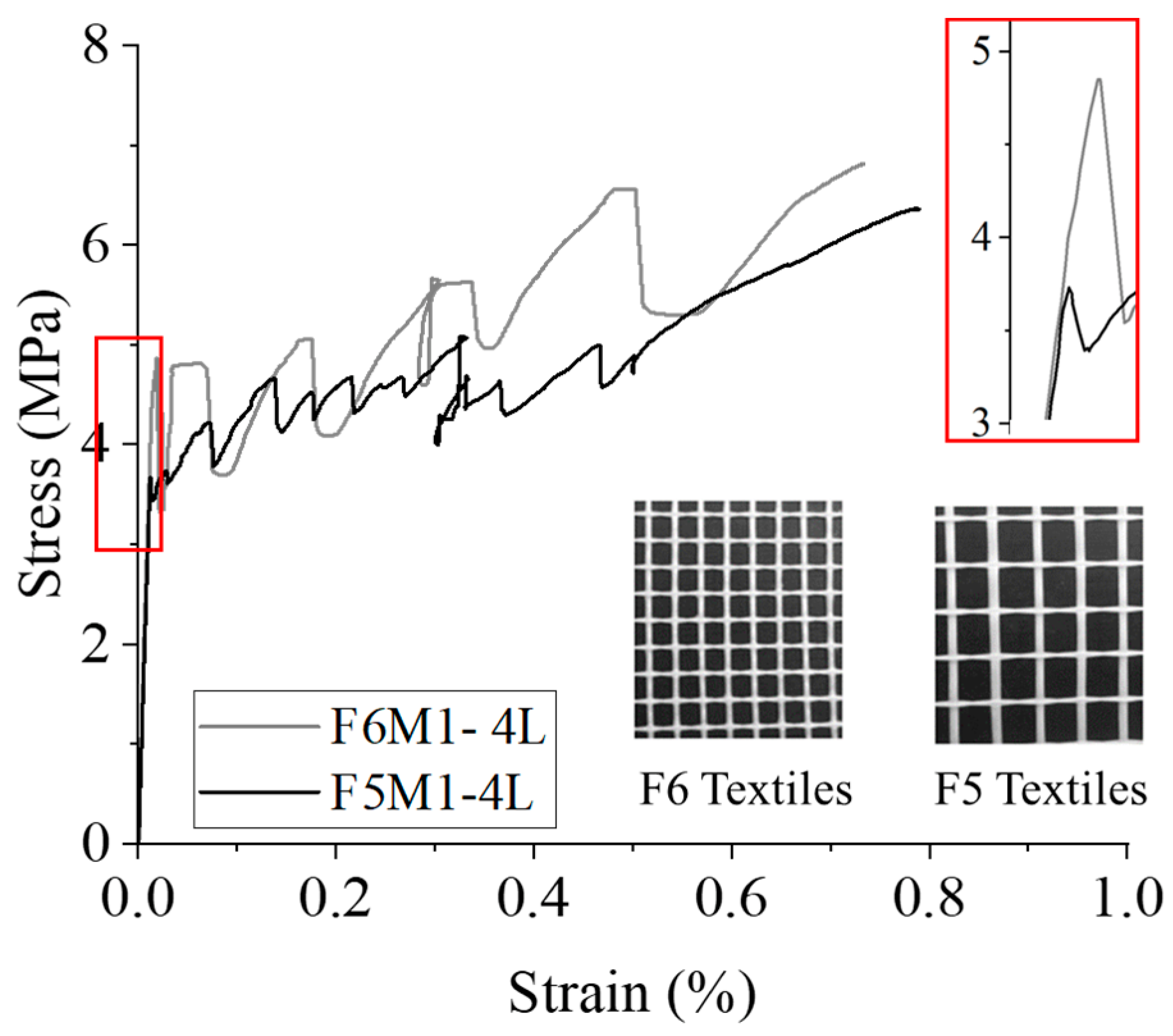 4.1. Effect of Textile Geometry on Stress-Response and Crack Formation