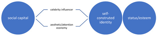 Understanding the relationship between fashion and identity, status, self-esteem, and confidence is fundamental to consumer engagement with fashion, and this is what sets fashion aside from other consumption contexts [5]. Emotions are triggered by fashion marketing [13] and social interactions, which appraise self-presentation as a process that is not always self-aware and yet construct perceptions of an individual’s value in wider society [27]. Zhao [27] likens this to Cooley’s [28] looking glass theory, where self-perception is created to manage others’ views and is peer endorsed. This links to theories around conspicuous consumption [29], where it is recognised that commodities are used as props in creating a narrative that communicates self-identity and related values, signalling social cohesion and relationships [28]. Social media platforms offer consumers a place to create their identity, using imagery, commentary, and tags to people, places, and brands [8] and thus constructing a sense of self-worth and belonging in society that accumulates in communicating social capital.