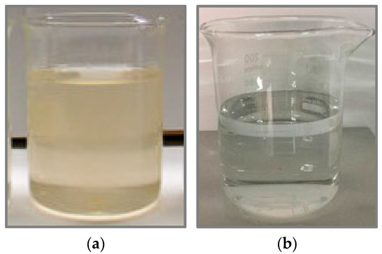Samples of (a) untreated collected rainwater; and (b) rainwater treated by UETWPP.