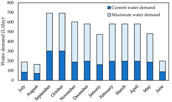 Current and maximum monthly water demand of UET building.