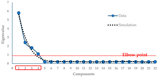Scree plot diagram. The red box indicates the number of components that can be retained.