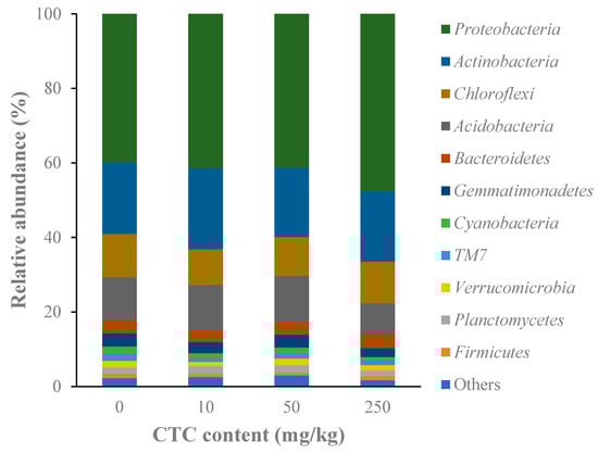 The relative abundances of microorganisms at the phylum level at different CTC treatments.