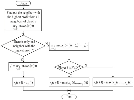 For ease of understanding, the strategy-updating rule above is rewritten in the form of a flowchart; see Figure 1.