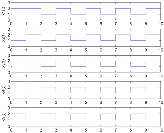 The vector form of strategy variables is utilized to define . Then, based on the STP technology provided in [48], the above photovoltaic energy transaction model can be equivalently transformed into its algebraic form