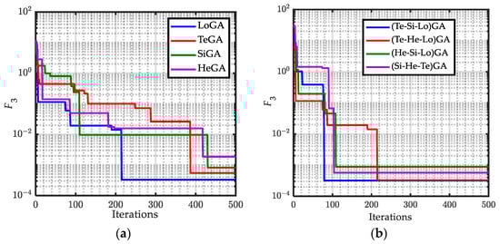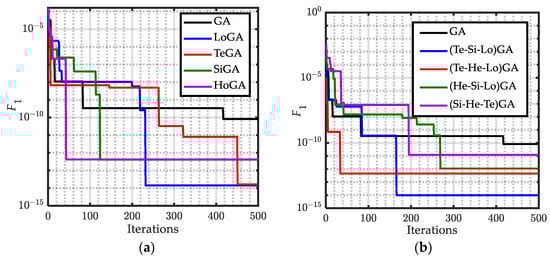 Recently, several research studies have modified the original stochastic techniques by including chaos theory in their optimization processes, such as chaotic PSO [], chaotic GSA [], chaotic differential evolution [], chaotic honey badger algorithm [], chaotic ABC [] and chaotic GA []. As a matter of fact, chaos systems are defined as deterministic nonlinear dynamic systems that are sensitive to initial conditions and their operating parameters []. In chaos systems, state variables are bounded and determined without repetition. These proprieties of chaos have encouraged researchers to incorporate them in the stochastic optimization algorithms, hoping to improve the solution quality and avoid the convergence of these algorithms into local optima. For instance, in [], a chaotic crossover has been integrated into the classical GA instead of using where candidate solutions have been represented by Gray codes. Another new chaotic GA has been proposed in [] where chaotic sequences generated by chaotic maps have been used to generate the initial population instead of the random process. However, genetic operators have been kept the same as in the traditional GA.