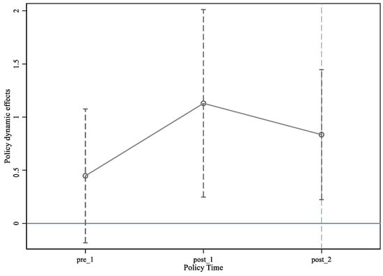 The policy time points in the figure are all dummy variables. pre_1 represents the time dummy before the policy occurred, post_1 represents the time dummy in the first period after the policy occurs, and post_2 is the time dummy in the second period after the policy occurs. The figure shows that the coefficient of pre_1 is insignificant, while the coefficients of post_1, and post_2 are positively significant, proving that the difference-in-difference model satisfies the parallel trend assumption.