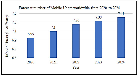 Mobile phones have become an important part of many people’s daily lives around the globe. According to Statista, the number of individuals using cell phones has surpassed 6.5 billion, and this figure is expected to rise rapidly. Figure 1 shows projected global mobile phone users from 2020 to 2024 [6]. M-Learning is rapidly gaining traction, particularly in the post-COVID period. Many recent studies have provided insights into the growing M-Learning industry.