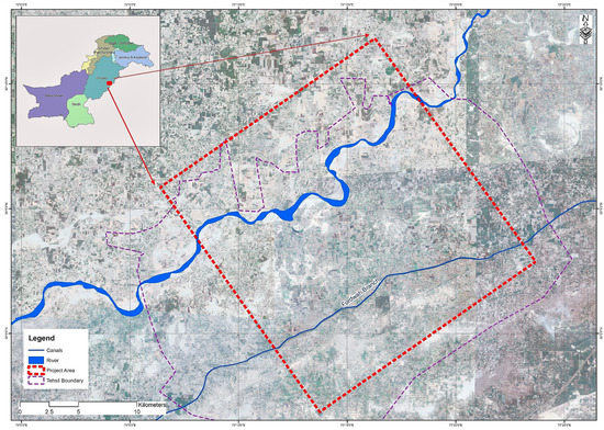 Bahawalnagar is a city in Punjab Province in Pakistan with a total area of 1800 km2 and is bounded by the Sutlej River. According to the 1981 Census of Pakistan, the city’s population was 367,367, and according to the 2017 Census of Pakistan, it was 815,143 (Punjab Development Statistics, 2017). This growth has been much more prominent during the last decade. The use of water by the city consists of domestic and agricultural activity, which has been enhanced by the increase in the population and cropping intensities. The main hydrological features in the area are the Sutlej River and Fordwah Canal.