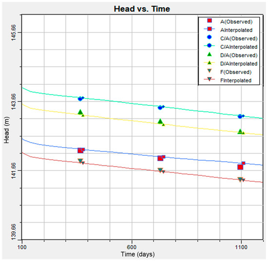Plot of Head versus Time of Calibrated Piezometers (Model Validation).