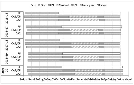 - Singh, A.K.; Das, B.; Mali, S.S.; Bhavana, P.; Shinde, R.; Bhatt, B.P. Intensification of rice-fallow cropping systems in the Eastern Plateau region of India: Diversifying cropping systems and climate risk mitigation. Clim. Dev. 2020, 12, 791–800. [Google Scholar] [CrossRef]