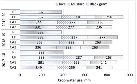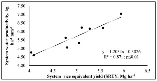| Treatments | Rice (kg ha−1 mm−1) | |||