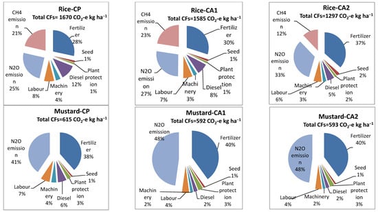 - Choudhary, M.; Rana, K.S.; Bana, R.S.; Ghasal, P.C.; Choudhary, G.L.; Jakhar, P.; Verma, R.K. Energy budgeting and carbon foot-print of pearlmillet-mustard cropping system under conventional and conservation agriculture in rainfed semi-arid agro-ecosystem. Energy 2017, 141, 1052–1058. [Google Scholar] [CrossRef]