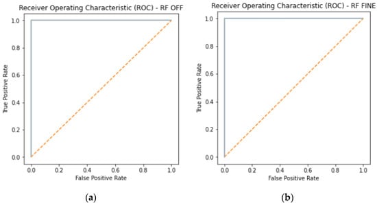 A standard graph for showing how well the classification model performs across all of its thresholds is the Receiver Operating Characteristic (ROC) curve. The false positive rate and true positive rate are the two metrics that this curve plots. To determine how well a classifier model will function, the ROC curve is examined. The classifier’s ability to accurately identify the faulty and non-faulty appliance is visually compared via the ROC curve. The Area Under the ROC (AUC) curve, which is closely connected to the ROC curve, serves as a numerical indication for assessing the effectiveness of multiple classification models based on the same dataset. The AUC curve aids in separating the effectiveness of various ML classification algorithms on the same dataset. The classifier that produces the ROC curve closer to the top-left corner performs better as compared to the curve along with the diagonal. The closer the curve is to the 45-degree diagonal, the less accurate is the classifier. The plots shown in the graph, that is closest to the top-left corner, shows its best accuracy in detecting faulty and non-faulty devices. ROC curves for various classes of RF classifiers are shown in Figure 10.