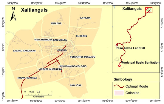 In Xaltianguis, much of the waste collection is carried out informally, with personnel who work without salary or legal benefits provided by the municipality; these workers live on the fees contributed by the population, as well as on the recycling activity, a common practice carried out in other places to reduce poverty [41]. Future perspectives related to the improvement of MSWM must be focused in such a way that they adhere to sustainable practices to ensure a better urban living environment which will increase the economic productivity of the region, promote direct benefits for public health, and facilitate safe, dignified and legally protected employment opportunities [3]. It is crucial to note that urban conditions cause differences in distance or time reduction and can also influence modifications in weight, impedance or cost [21].