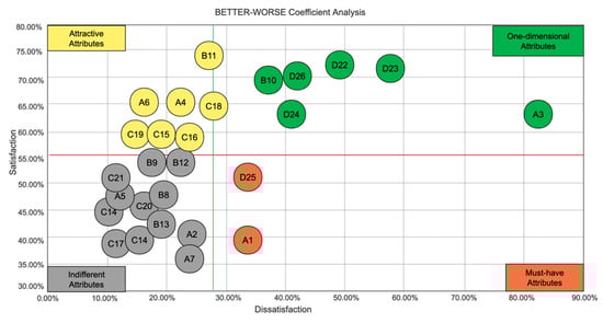 3.2.2. Application of the Kano Model to Determine the Core Attributes and Their Relationships with User Satisfaction