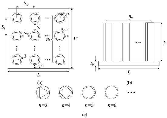 In this study, the design of a heat sink with polygonal pin fins is a natural convection case with nine design variables. As a commonly used heat transfer enhancement device, the PFHS is widely used in the heat dissipation of electronic components. Different shapes of PFHSs affect the heat transfer performance of the heat sink. To date, numerous studies have been dedicated to the optimization of heat sinks with various fin geometries, such as rectangular, diamond, square, pentagonal, or cylindrical geometries. Ramphueiphad and Bureerat [8] and Vanapalli and Brake [9] studied six different pin fins with the same cross section. Matsumoto et al. [10] experimentally and numerically studied five types of PFHS under natural convection and analyzed the influences of the size, height, and number of fins on the thermal performance. Zhao et al. [11] numerically studied flow and heat transfer characteristics of micro square PFHS and obtained optimal geometric parameters. Although this problem has been widely investigated, few studies have used an optimization method for PFHS structural design. Therefore, the introduction of a multi-objective design for PFHS should further improve heat transfer performance.