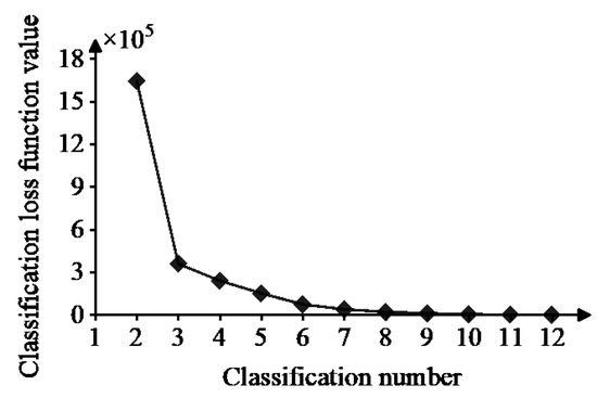 Figure 8 shows that when the classification number is 3, the inflection point of the curve is obvious. According to the principle of the Fisher optimal division method, all statistical periods can be divided into three categories. The results are shown in Table 1.