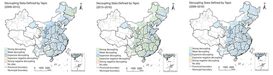 The only five categories of decoupling status measured for China’s prefecture-level cities for the time periods 2009–2012, 2013–2016 and 2009–2016 were as follows: strong negative decoupling, expansive negative decoupling, expansive decoupling, weak decoupling and strong decoupling.