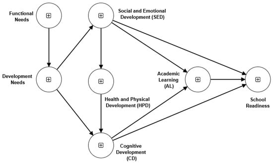 According to [61], school readiness is a complex, multifaceted and systemic combination of early childhood education experiences. It can be described as a reflection of children’s behavior, competencies, and achievements in preschool years [62]; children’s abilities to play their role as a student, and be accustomed to the primary school setting and future studies [63]; and children’s capabilities for handling all demands at school in which children are able to explore and ask questions comfortably, listen to teachers and pay attention during classes, play with classmates, and obey the rules at school [64]. Ref. [65] mentioned that children who are not yet ready for school may find it challenging to follow instructions and any activities in the classroom. Therefore, school readiness has been a critical requirement for assisting children in adapting to whatever challenges they may have at school, which will contribute greatly to children’s future success [66]. According to a study by [67], academic competence, an important thinking skill, socio-emotional maturity, physical ability and motor development, self-discipline, and communication competence, are the six primary factors that determine a child’s preparation for school.