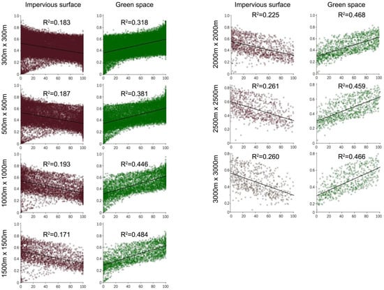 In this study, we first calculated the landscape pattern metrics associated with green space and impervious surface (