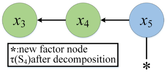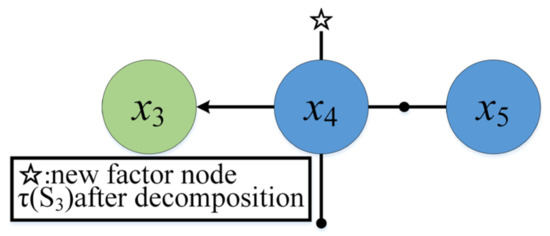 In a front-to-back order, the state information of is first passed to as a priori information and is eliminated. The result is shown in Figure 5, where “☆” indicates the new factor node obtained through the partial QR decomposition.