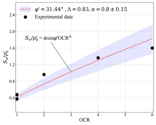 where the value of is generally unchanged, and values of remolded specimens are normally so small that they can be ignored [22,35]. Values of are dependent on values of OCR [23,36].