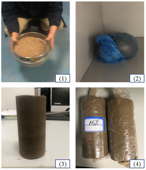- The prepared soil was pressed into mold in layers. Then, a soil sample is made, which was 100 mm in height and 50 mm in diameter;