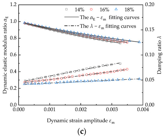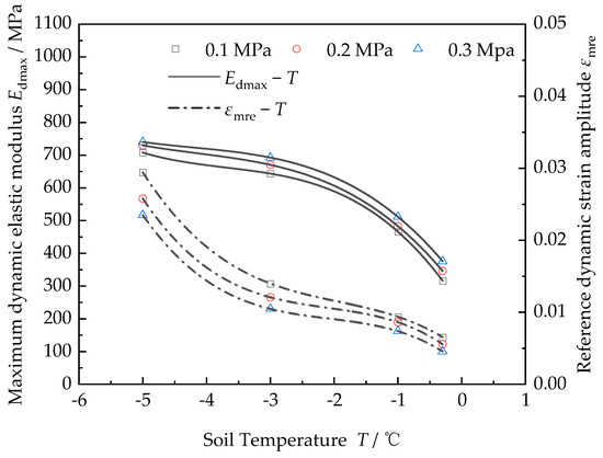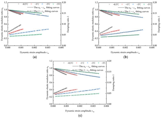 - Soil temperature is one of the most important factors. With a decrease in soil temperature, the dynamic elastic modulus ratio, maximum dynamic elastic modulus and reference dynamic strain amplitude of frozen silty clay show an increasing trend, while the damping ratio has a decreasing trend. Moreover, the dynamic elastic modulus ratio and damping ratio tend to change gently with the dynamic strain amplitude when the soil temperature increases;