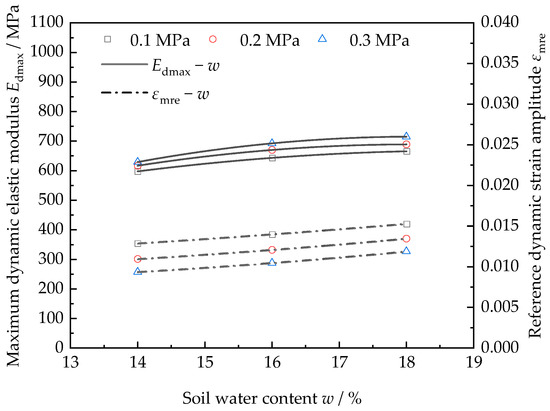- With an increase in soil water content, the dynamic elastic modulus ratio, maximum dynamic elastic modulus and reference dynamic strain amplitude of frozen silty clay tend to increase, while the damping ratio tends to decrease. Moreover, the dynamic elastic modulus ratio and damping ratio tend to change gently with a change in soil water content. If the soil water content is below 16%, the effect of confining pressure on the dynamic characteristics of frozen soil will become more obvious;