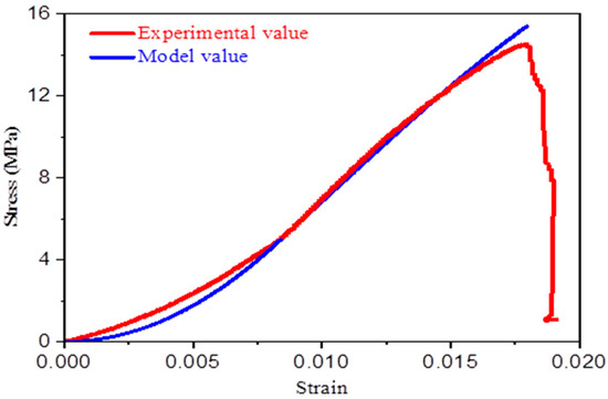 The model stress for the coal sample N1 is in good agreement with the experimental stress in Figure 7, suggesting that the piecewise statistical damage constitutive model, calculated by Equation (26) based on cumulative AE count established in this paper, is feasible.