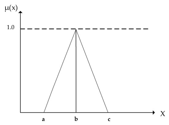 Figure 4 also shows the triangular fuzzy number shape with its lower (a), mean (b) and upper bound (c) values [37]. Fuzzy numbers can also be represented by alternative distributions, but it was decided to use the triangular distribution for the sake of simplicity.
