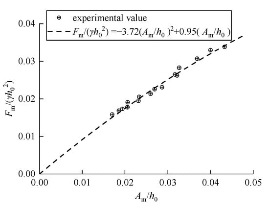 The comparison between the function diagram of Fm/(γh02) changing with Am/h0 and the experimental value.