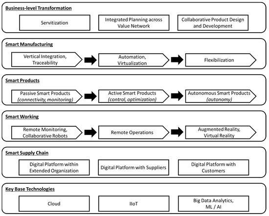In addition, real-time integration of intra-firm and inter-firm operations leads to the virtual removal of firm boundaries, resulting in end-to-end digital integration in the extended value chain [9]. As a result, I4.0 delivers greater flexibility and robustness to firm competitiveness and enables a firm to build flexible and adaptable business structures. This, in turn, provides a firm with the capability for internal evolutionary developments in order to cope with the changing business environment [5]. Thus, I4.0 represents an “evolution” in factory operations and a potential “revolution” in the manufacturers’ value proposition. However, as of 2020, most manufacturers have failed to seize the revolutionary opportunities of I4.0 [10]. The main obstacles toward the I4.0 transformation are the cost of the implementation process, employees’ attitudes, and a lack of expertise [11].