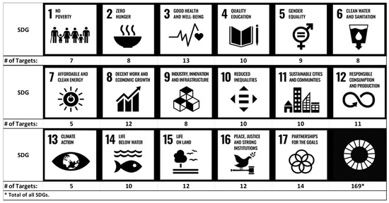 The 17 SDGs, listed in Figure 2, are operationalized through a total of 169 targets, where each of these targets is associated with one or more indicators or measures. In total, 247 indicators have been identified by the UN [18]. While all 247 indicators are equally important, to facilitate global implementation, the indicators are classified into three tiers based on their level of methodological development and the availability of data at the international level [18].
