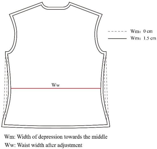 For example, by adding an interactive parameter of “width of depression towards the middle (Wm)” to the above algorithm model, the user can control the tightness of the shirt waist by customizing the size of Wm. Figure 6 shows the comparison effect of the back piece with different Wm values.