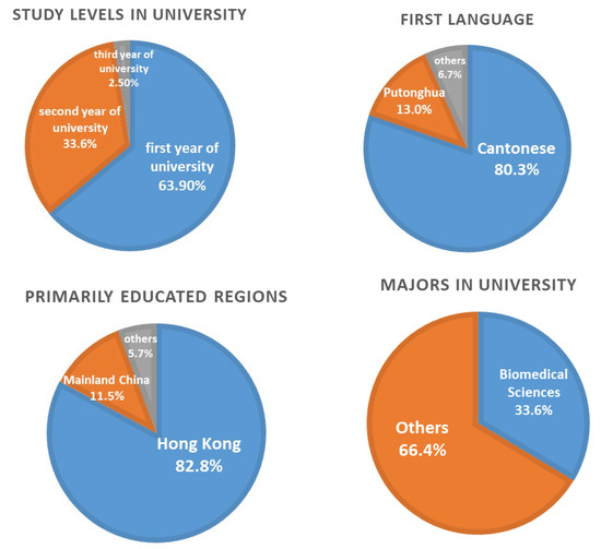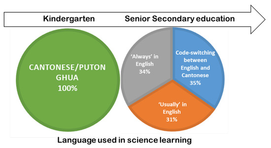 - Pun, J. Effects of Prior English Exposure on Hong Kong Tertiary Science Students’ Experiences in EMI Learning. RELC J. 2022, 1-18, 003368822210790. [Google Scholar] [CrossRef]