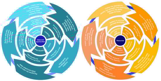 The European Union (via the European Skills Agenda for Sustainable Competitiveness, Social Fairness, and Resilience) [71], the United Nations (via the 2030 Agenda for Sustainable Development) [72] and China (via China’s National Plan on Implementation of the 2030 Agenda for Sustainable Development) [73] have strategic policy documents that consider and promote entrepreneurial (behavioral and intellectual) and sustainability competencies as (i) important factors in developing social and economic sustainability and (ii) key priorities for education and lifelong training. EntreComp can be considered a reference point European tool to support the development of shared concepts of entrepreneurship competencies, goal setting, and evaluation [3]. Generally, creative and good entrepreneurial ideas can bring value and the effect of entrepreneurial action on the target community, the market, society, and the environment [2].