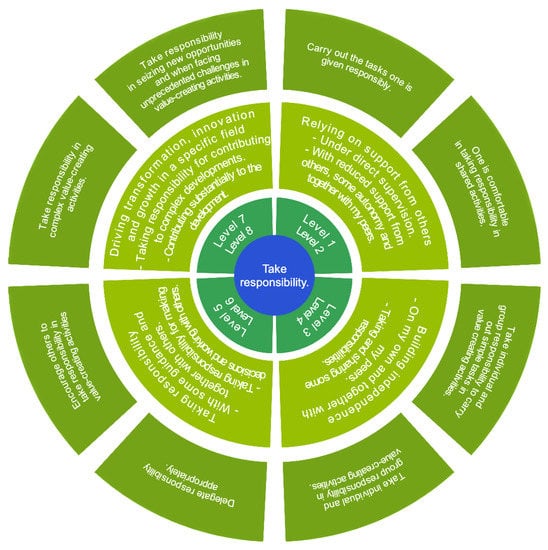 In [23], the competencies of the EntreComp framework are compared with five other competence models (Nordic, Danish, UK, USA, and EU) and 19 common competencies were identified, among them responsibility, creativity, recognition of opportunities, exploitation, work in a team, and management skills.