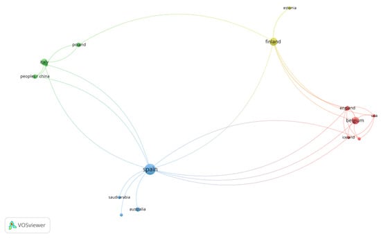 Over the seven-year period (2016, 1 (2.70%), 2017, 2 (5.41%), 2018, 2 (5.41%), 2019, 5 (13.51%), 2020, 14 (37.84%), 2021, 9 (24.32%), and 2022, 4 (10.81%)), the total number of publications in the research field was 37 (from 71 organizations and 31 countries). There were 20 articles and 17 proceedings papers from the following WoS categories: education educational research/education scientific disciplines (14, 37.83%, 4, 10.81%), business/management/economics (12, 32.43%, 7, 18.92%, 4, 10.81%), engineering multidisciplinary (4, 10.81%), green sustainable science technology (4, 10.81%), environmental sciences/environmental studies (3, 8.11%). The most productive countries were Spain (11 publications), Finland (6), Belgium (5), Italy (4), and Romania (3), and the hierarchy in terms of citations was as follows: Spain (30 citations), China (16), Italy (8), Estonia (8), Finland (7), Belgium (7), and Poland (7) (Figure 4 and Figure 5).