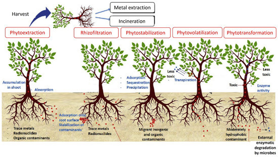 Phytoremediation mechanisms for various types of heavy metals mitigation. Reproduced with permission from [25]. Copyright 2020 Elsevier Ltd.