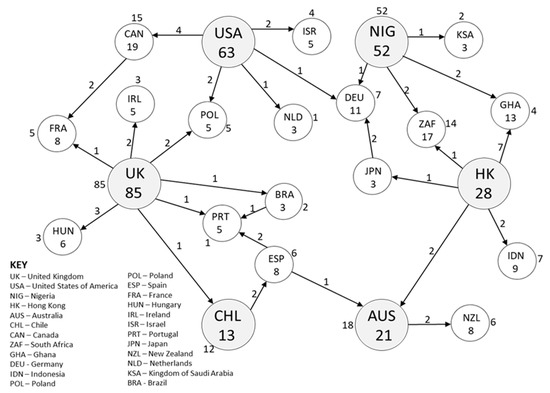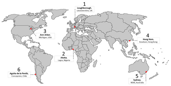 - Survey and Data Validation—VADER is trained and validated by the developers [64], and Abdul-Rahman, Chan, Wong, Irekponor, and Abdul-Rahman [55] showed that the output has high accuracy. However, to further reduce bias and narrow the error margin, the assumption that the residents, workers, and visitors’ displeasures about a community (negative polarities) represent the community’s challenges needs to be re-validated. Physical distribution of the questionnaire survey as used by Abdul-Rahman, Chan, Wong, Irekponor, and Abdul-Rahman [55] slows down the process, therefore, this study proposed an online survey via email and twitter to experts identified through research databases and some identified from the big data based on their work on studentification and community resilience, sustainability and artificial intelligence in the 6 countries of the case studies. The survey instrument was designed and tested followed techniques used by Darko [65]. A pilot survey was carried out before the main questionnaire survey. The purpose of the pilot survey was to test the survey procedures and verify the comprehensiveness and the use of technical language [66]. The pilot survey was administered to five participants: two professors, one chief resilience officer, one post-doctoral researcher, and a doctoral researcher. These participants are all well knowledgeable in the field of CRA and the use of artificial intelligence for big data mining and natural language processing. After the pre-testing phase, the survey instrument was perfected and administered to experts for seven months, from June 2020 to February 2021. The experts were asked to forward the questionnaire link to others they feel are eligible to answer the questionnaire within their network, including experts outside of their countries and copy the research team. A total of 392 valid responses were received. Figure 4 shows the number of responses received for validation and the extra 17 countries the survey snowballed to. The questionnaire used for this study is available online via https://theses.lib.polyu.edu.hk/handle/200/11732 (pg. 99–203), accessed on 24 December 2022. Only sections A and B were used for validation in this study. Section A was used to collect the respondents’ biodata. In contrast, section B collected data on the respondents’ countries and the respondents’ agreements on the data grouped under the five dimensions of studentification (cultural, social, physical, economic, and institutional and governance challenges). A 5-point Likert scale (1 = strongly disagree; 2 = somewhat; disagree; 3 = neither agree nor disagree; 4 = somewhat agree; 5 = strongly agree). Four data analysis methods were used: (1) The reliability of the scales was measured using Cronbach’s alpha; (2) Ranking was performed using Mean value ranking; (3) Standard Deviation scores; (4) The Mean values were normalized (Normalized value = (mean—minimum mean)/(maximum mean—minimum mean)). SPSS v26 and Python v3.10.8 were used for the validation analysis.