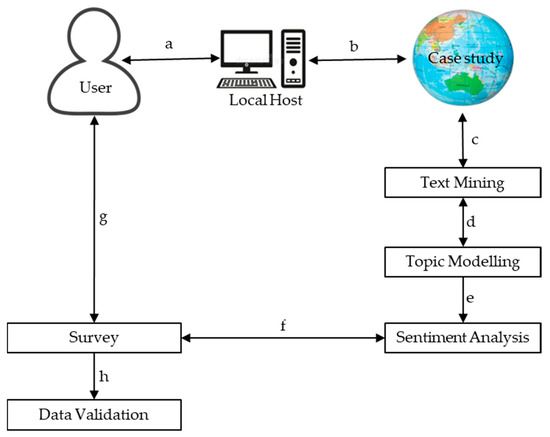 - Text mining—The User downloads the Optimized-Modified-GetOldTweets3-OMGOT (https://github.com/marquisvictor/Optimized-Modified-GetOldTweets3-OMGOT, accessed on 24 December 2022) library from GitHub and follows the instructions in the ReadMe file to mine public UGC from Twitter. Optimized-Modified-GetOldTweets3-OMGOT is a python-based open-source tool containing a set of programmatic algorithms designed by Abdul-Rahman, Chan, Wong, Irekponor, and Abdul-Rahman [55] to streamline searches and bypass the rate limits of the Twitter APIs, allowing the download of unlimited historic tweets generated from a specific geo-location using the PyQuery tool, from terminal or command prompt. The algorithms download both the UGC (tweets) and their metadata into Microsoft Excel files (.csv) directly to the Local Host. Since the data is downloaded to .csv file(s), it can easily be transferred outside of the Python environment for further data analysis. In this study, only tweets in the English language were downloaded.