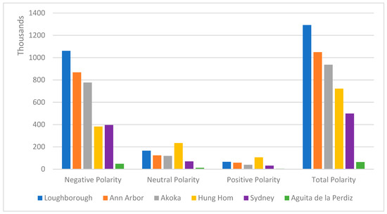 - Sentiments Analysis—Each topic folder in step (d) was analyzed for sentiment polarity using Valence Aware Dictionary and sEntiment Reasoner (VADER) (https://github.com/cjhutto/vaderSentiment, accessed on 24 December 2022). VADER is an ML and NLP open-source tool that analyses textual data according to their sentiment polarity (positive, negative, and neutral) and intensity [63]. Negative comments from the community residents and visitors represent displeasure and community challenges. Due to the unstructured nature of the social media data, VADER is one of the best NLP tools for analysing sentiments from social media UGC [47,48].