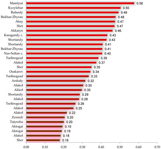 | Akmola | Arshaly | (0.009;0.695;0.294;0.667;0) | 0.315309601 |