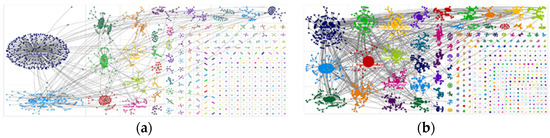 - Clauset, A.; Newman, M.; Moore, C. Finding community structure in very large networks. Phys. Rev. 2004, 70, 066111. [Google Scholar] [CrossRef]