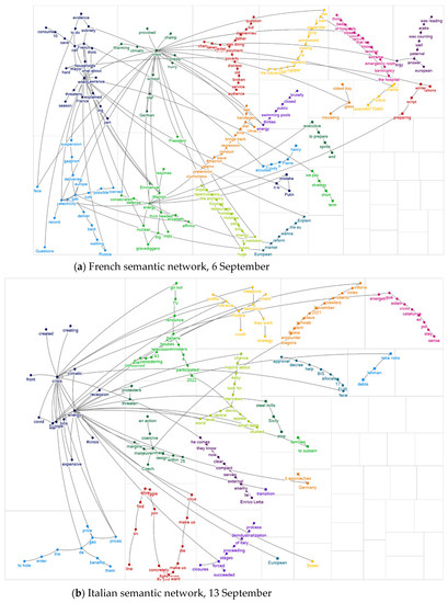 - Danowski, J.A.; Yan, B.; Riopelle, K. A semantic network approach to measuring sentiment. Qual. Quant. 2020, 55, 221–255. [Google Scholar] [CrossRef]