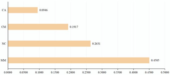 Local weight of influencing factors under dimension level of AHP: (a) Local weight of influencing factors under NC dimension; (b) Local weight of influencing factors under CA dimension; (c) Local weight of influencing factors under CM dimension; (d) Local weight of influencing factors under MM dimensions.