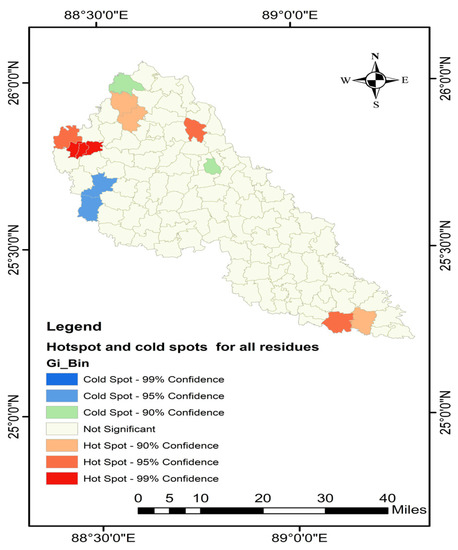 After making hotspot analysis, a map of spatially statistically significant clusters with high potential biogas generation sites is intersected with the final suitability map to determine the best location of higher residue generation sites for identifying the optimal location, number, and size of plants.