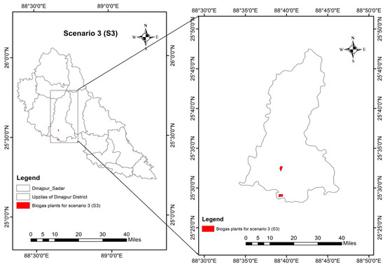 Perpina et al. (2013) [25] and Silva et al. (2014) [26] identified AHP as an effective method for finding suitable locations for biomass plants. Furthermore, a study by Sahoo et al. in 2018 [27] showed the location of biogas plants from available crop residues through a GIS-based model with multi-criteria analysis. Additionally, Venier and Yabar, 2017 [28] studied optimal sites for biogas plants by using spatial statistical GIS-based suitability analysis, considering geographical, environmental, and socioeconomic criteria in Buenos Aires Province. Yet, there are few details on Bangladesh’s appraisal of rural waste as a substantial source of bioenergy generation.